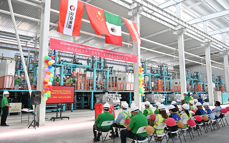 7月17日,立中(墨西哥)公司在熱工車間舉行首只鑄造車輪下線慶典儀式,蒙特雷海關工業園區商務總監Daniela Silva女士等外部嘉賓、集團駐墨領導、公司班子成員、公司中籍和墨西哥籍員工代表共計60余人參加了慶典儀式。